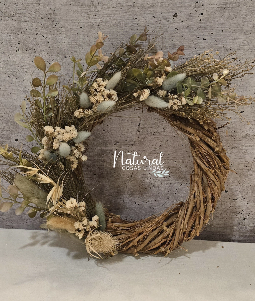 Descubre nuestra Corona Cardo, una pieza única y artesanal que transformará cualquier espacio. Este hermoso adorno, hecho a mano, es ideal como centro de mesa para eventos o simplemente para embellecer tu hogar.
