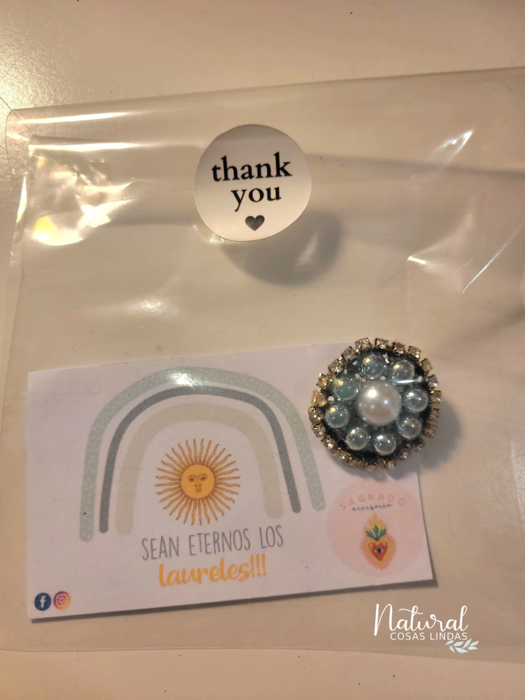 Escarpela artesanal hecha a mano con todo el amor y la dedicación que le ponen las manos argentinas. Esta pieza única es el detalle perfecto para lucir en fiestas patrias o simplemente para sentirte orgulloso de tus raíces. Confeccionada con los colores de nuestra bandera, esta escarapela es un símbolo de identidad y patriotismo que no puede faltar en tu guardarropa. ¡Lleva contigo un pedacito de Argentina a donde vayas con esta hermosa escarapela hecha con tanto cariño!
